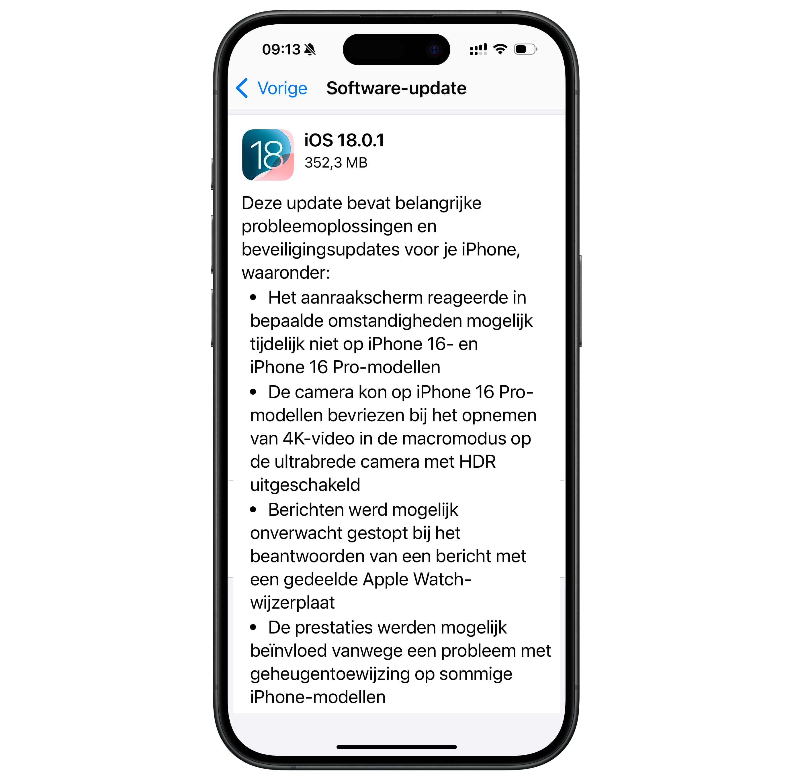 Hieronder vind je de complete release notes voor iOS 18.0.1