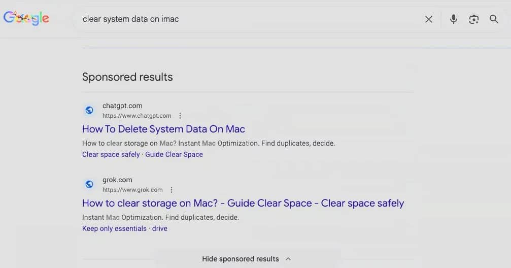 In dit geval kan het misgaan als een gebruikt aan ChatGPT of Grok vraagt om meer schijfruimte in macOS (“Clear disk space on macOS”).