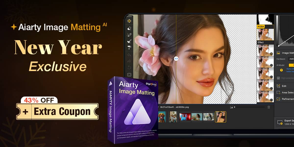 Nieuwjaarspromotie: flinke korting op een levenslange licentieOm het nieuwe jaar te vieren, is Aiarty Image Matting momenteel verkrijgbaar met een speciale korting. Je krijgt