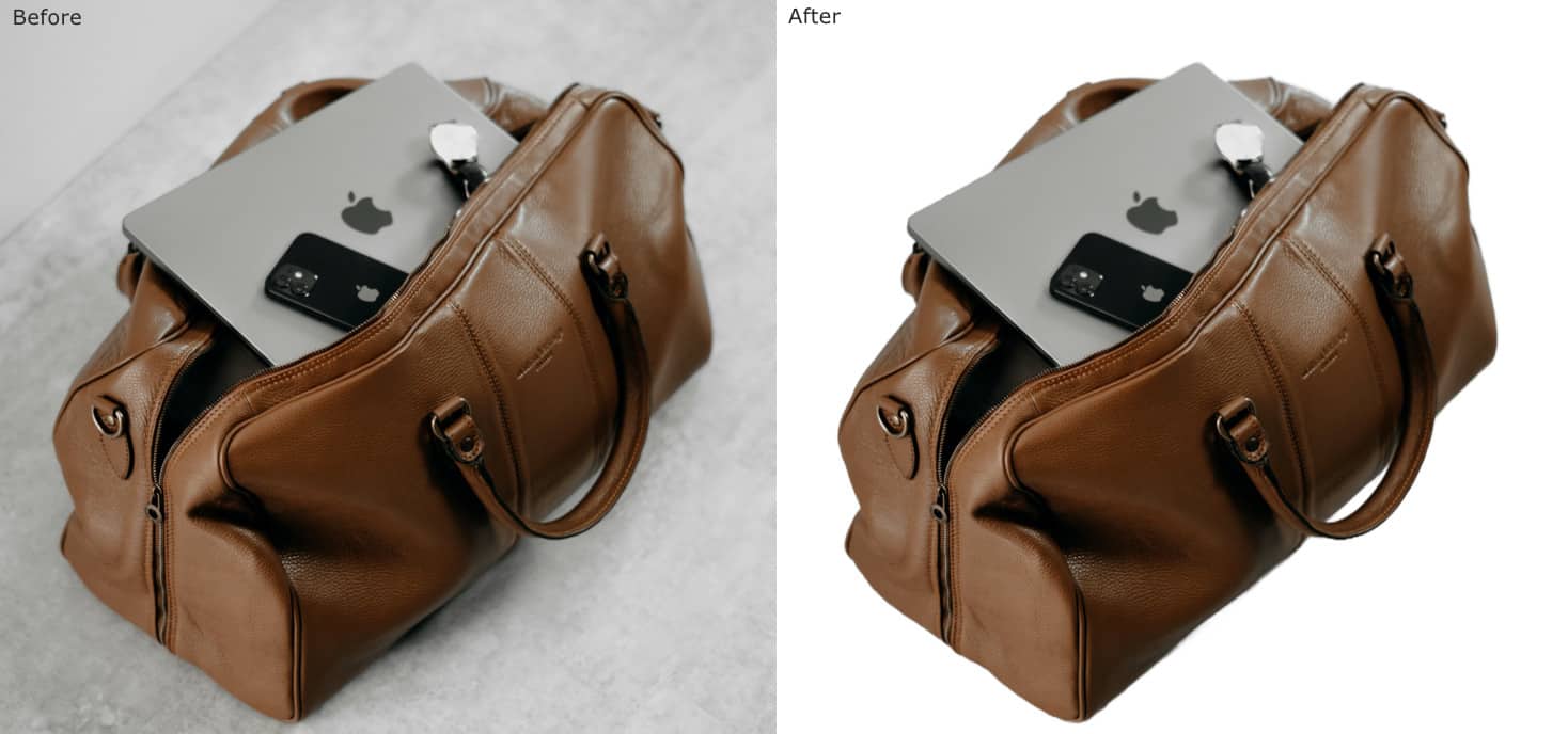 2. Productafbeelding: strakke uitsnede voor e-commerceAiarty Image Matting herkent de vorm van de tas nauwkeurig en gaat moeiteloos om met complexe randen, zoals handvatten en zachte schaduwen. Het resultaat is een strakke uitsnede die perfect geschikt is voor webshops, catalogi of marketingmateriaal.